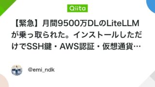 ニュー速+ 【緊急】月間9500万DLのLiteLLMが乗っ取られた SSH鍵・AWS認証・仮想通貨が全部盗まれ、影響計り知れず、全ノードにバックドアも