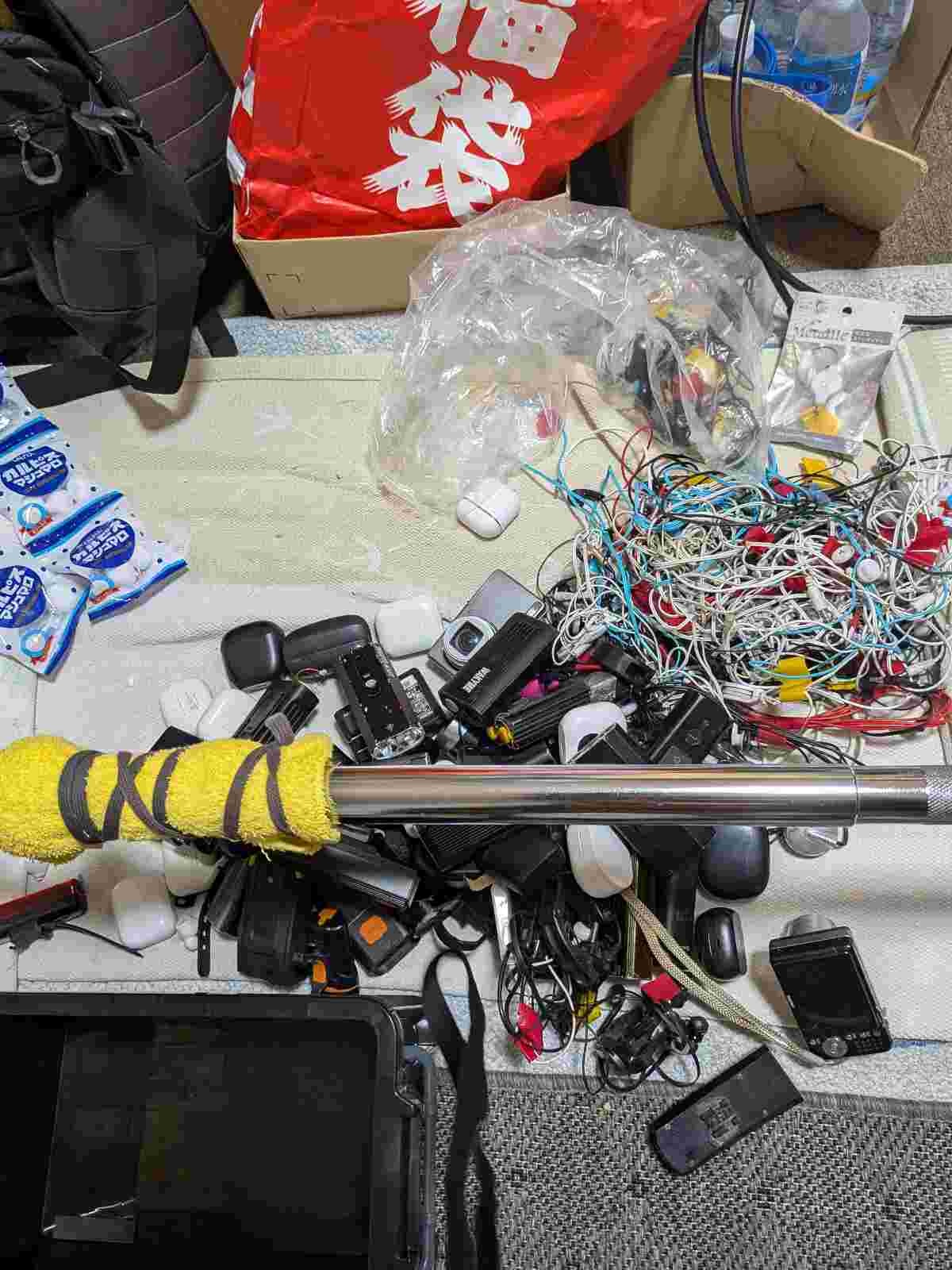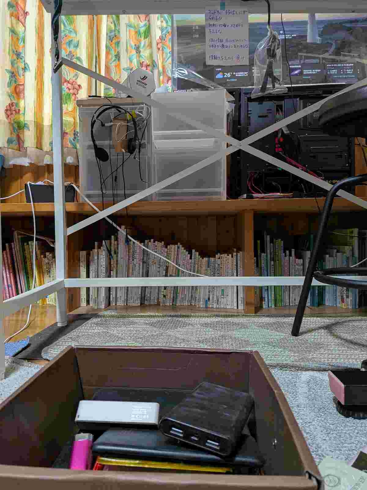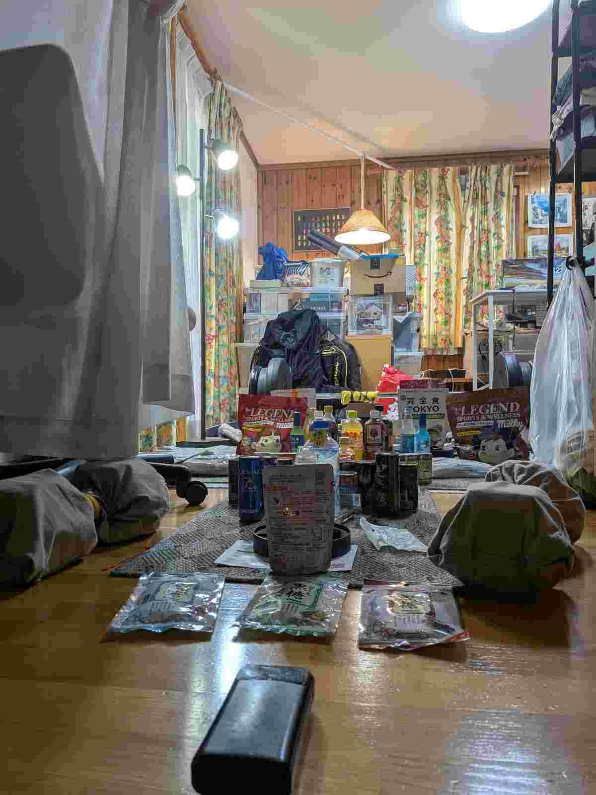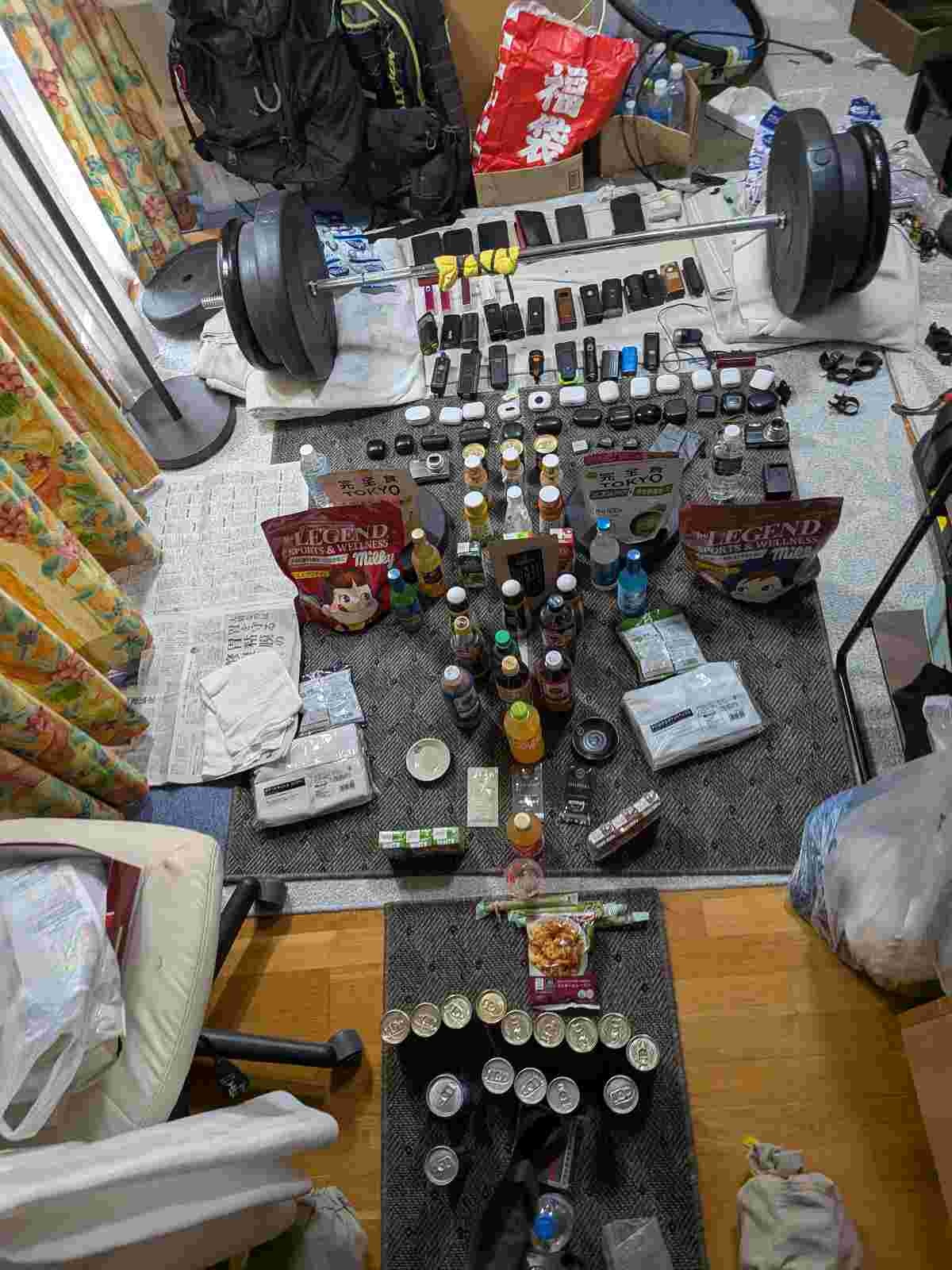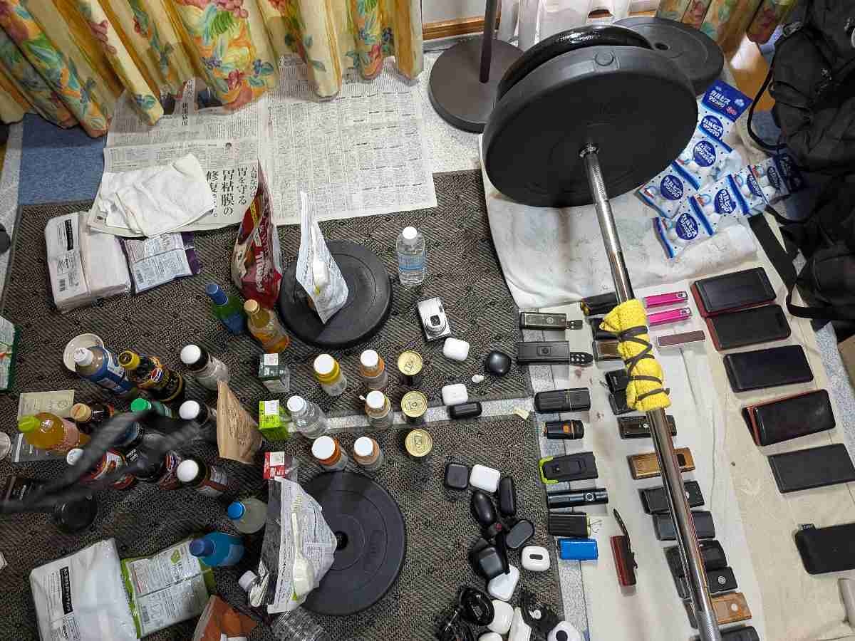 食料と携帯バッテリーを用意してて秘密基地みたいだな