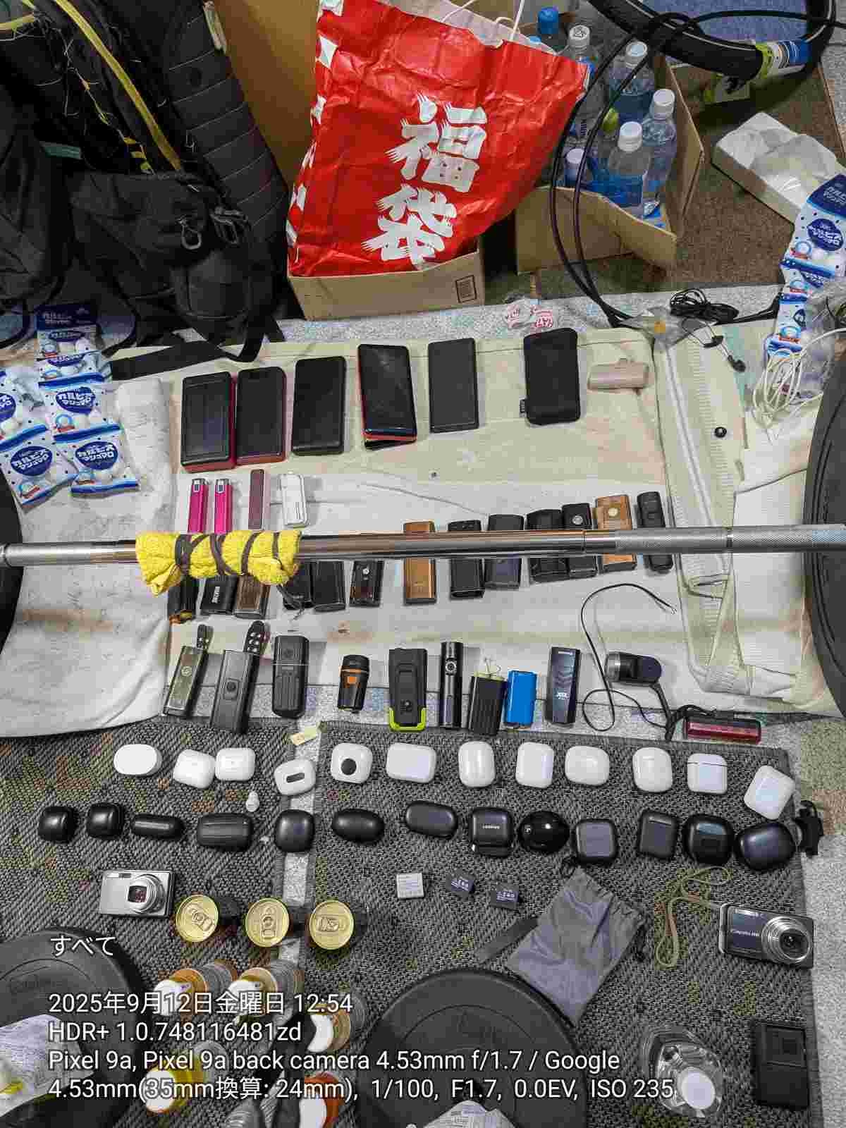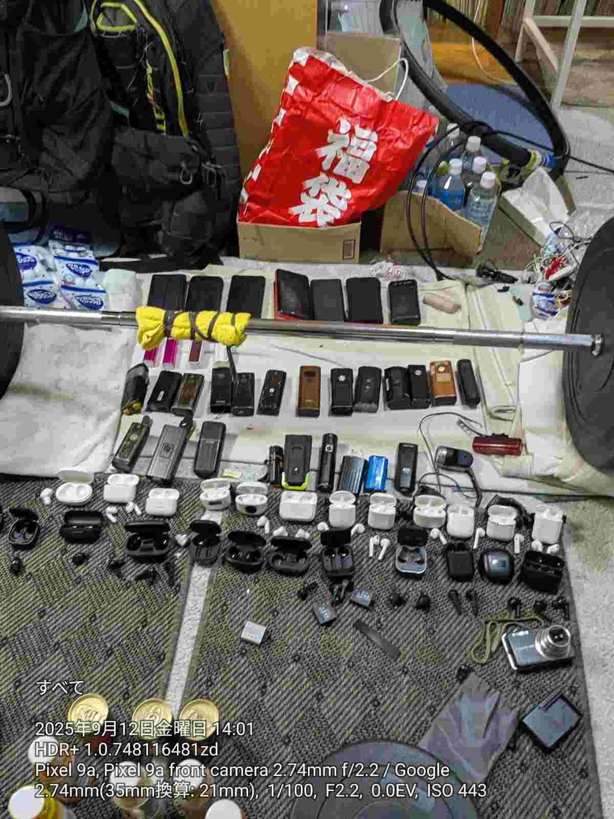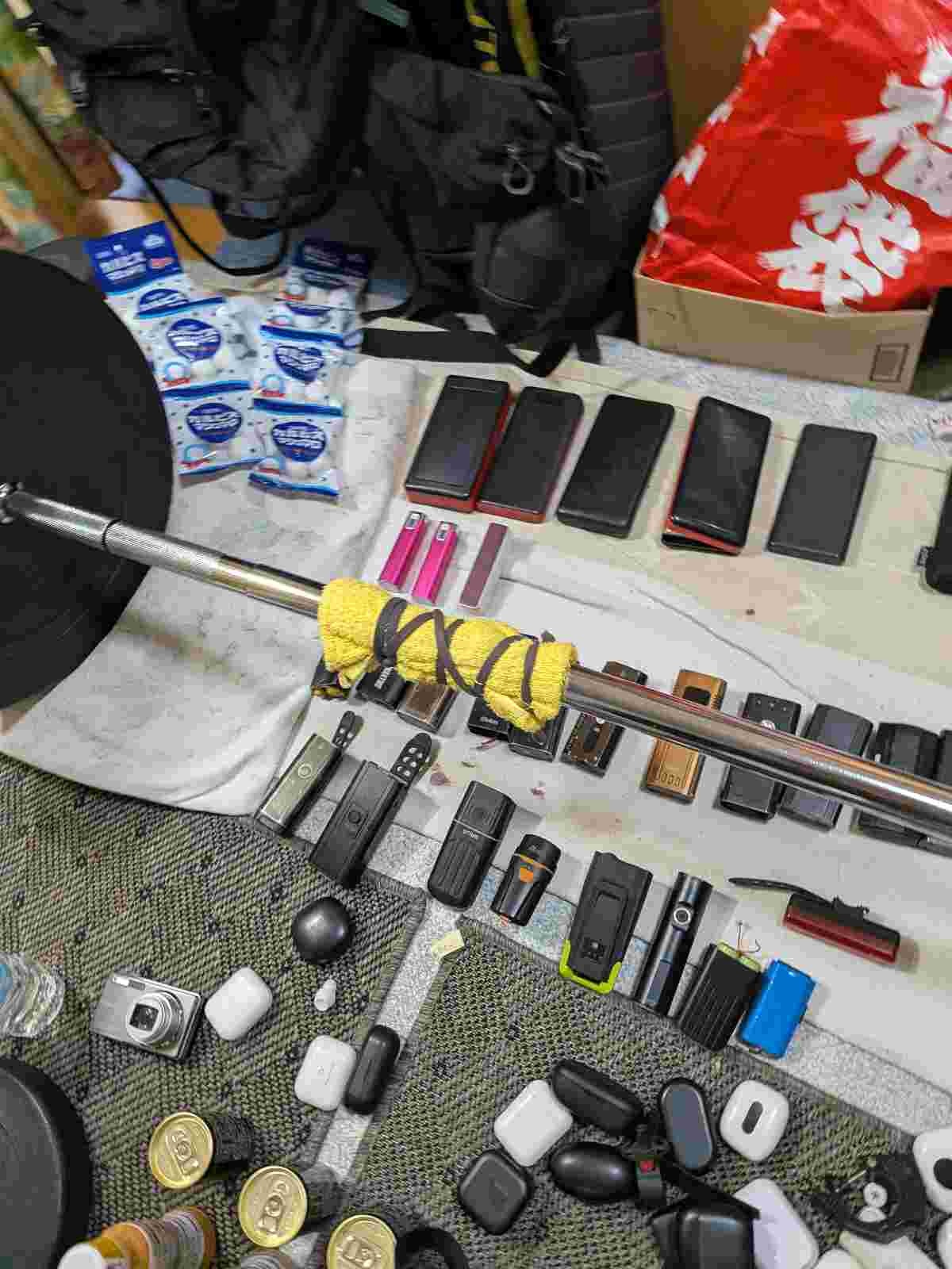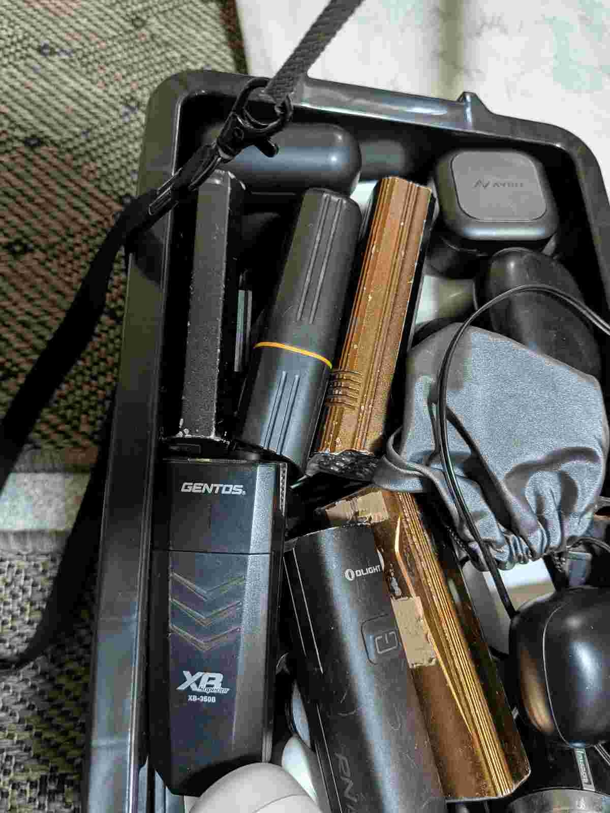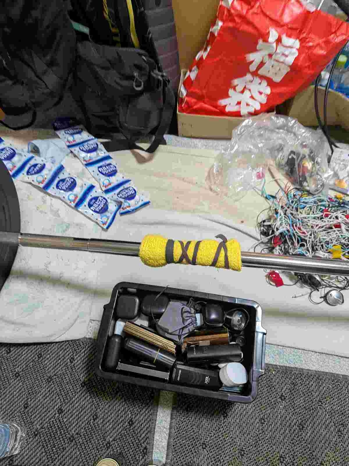 食料と携帯バッテリーを用意してて秘密基地みたいだな