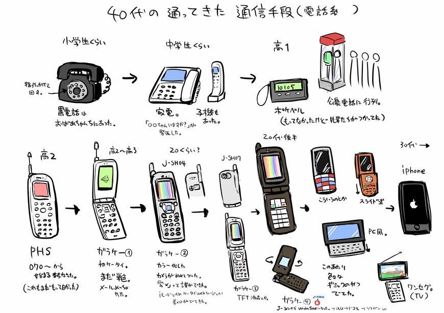 40代が通ってきた黒電話からスマホまでの歴史 「1枚でまとめた懐かしいイラスト」に共感の声が続々