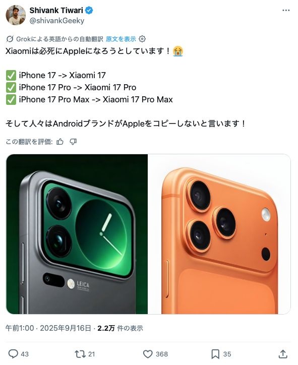 Xiaomi、新iPhoneと勝負する為の新スマホを発売へ