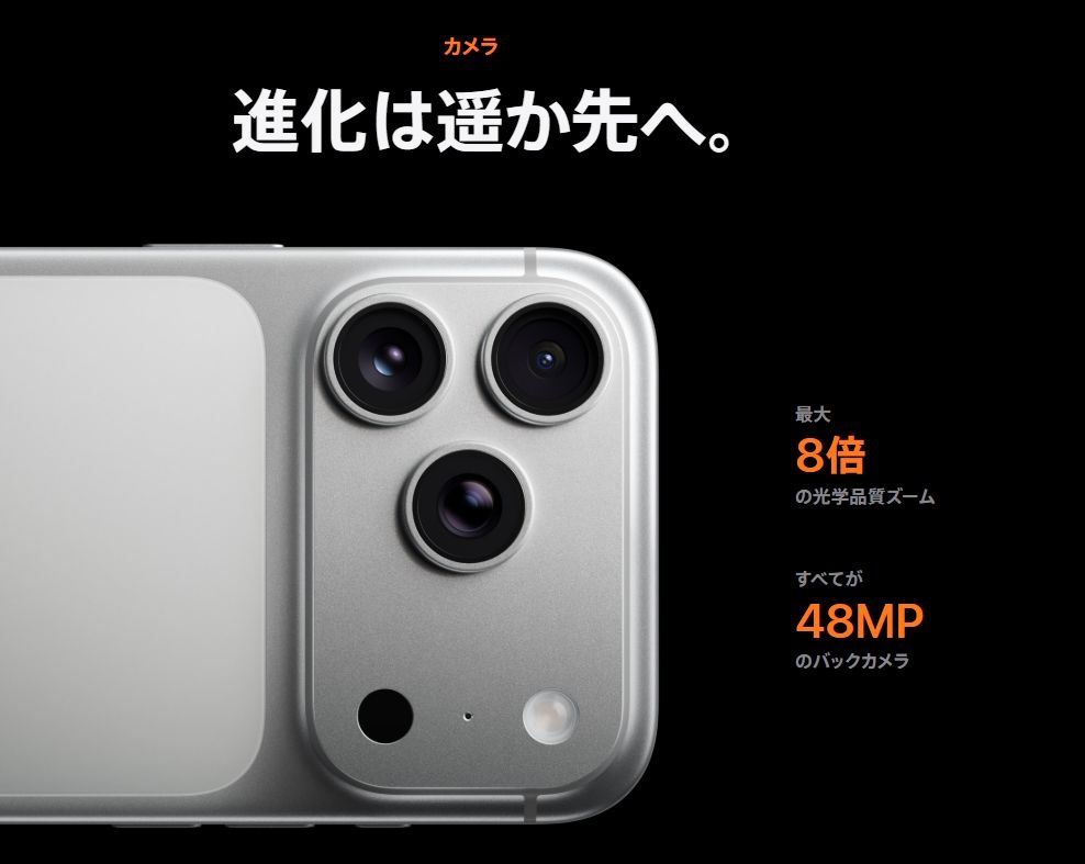 https://www.itmedia.co.jp/mobile/articles/2509/18/news093.html望遠レンズの解説について、「最大8倍の光学品質ズーム」と修正されている