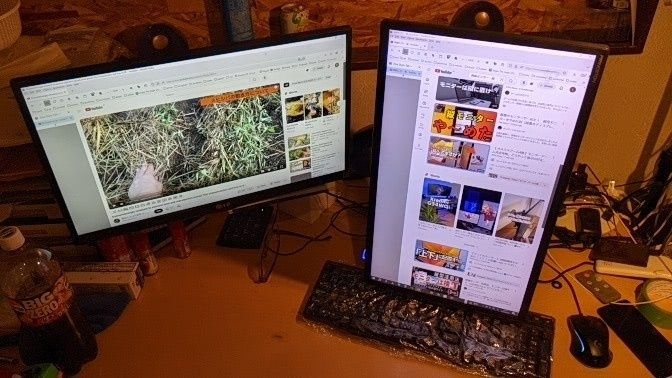 縦と横で使うときは縦は小さめのモニタ、横はでかいモニタを使うんだよ