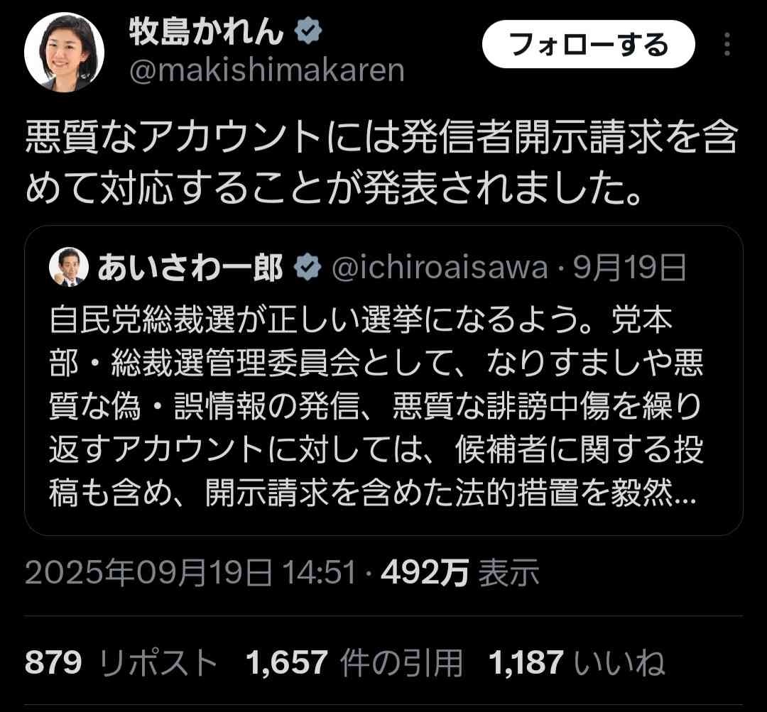 開示したところ投稿者は牧島かれんでした。