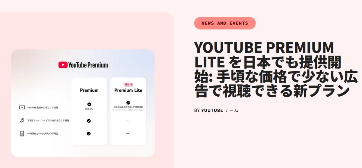 「YouTube Premium Lite」試験的提供開始へ。広告なしで月780円YouTubeは、様々なYouTube動画を広告なしで楽しめる新プラン「YouTubePremiumLite」の試験的提供を、9月26日より順次開始する。今後数週間以内に利用可能になるという。av.watch.impress.co.jp