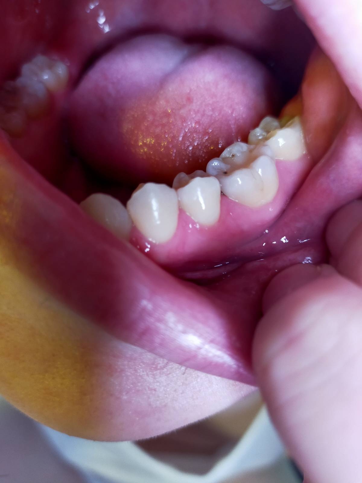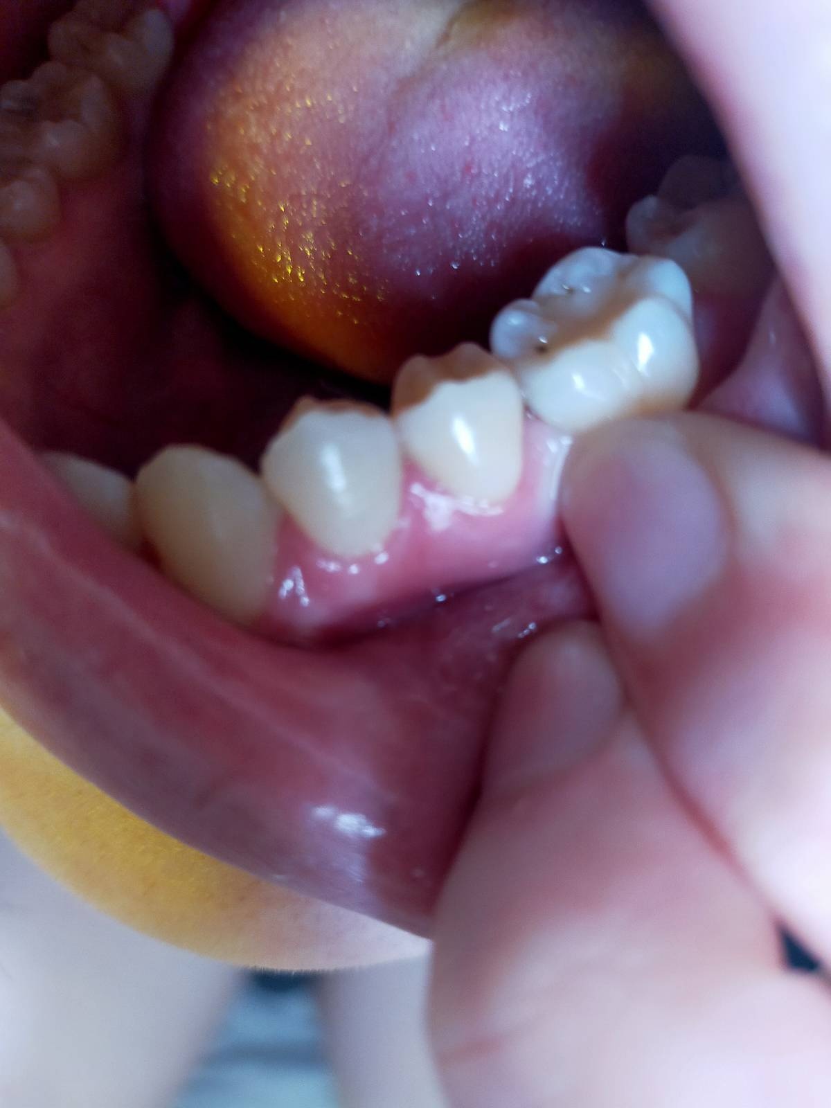 虫歯っぽいなぁもし洗ってみてとれたら黒い歯石なんだけどその奥歯一回治療してるとこだし虫歯になりやすい歯だし