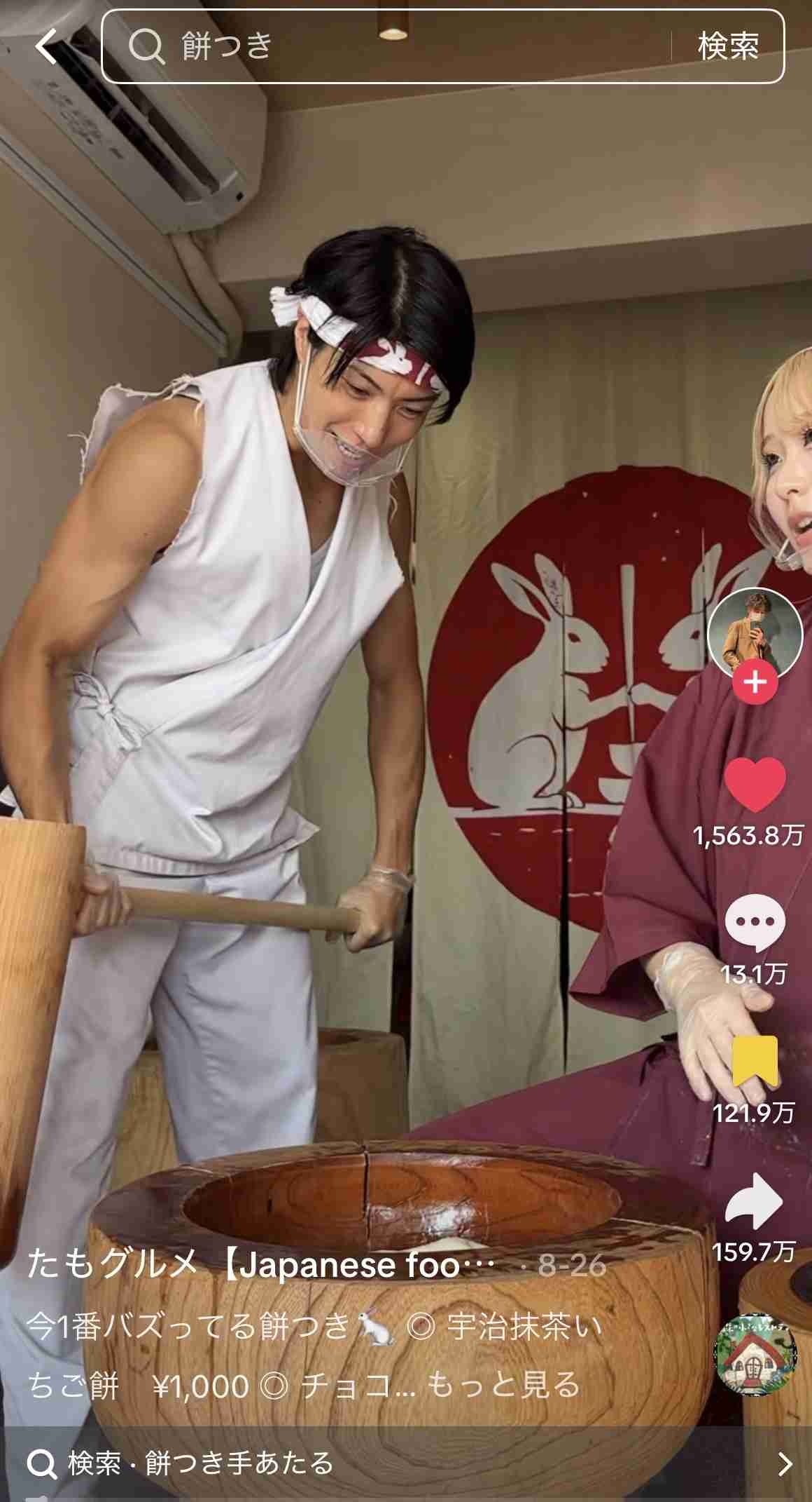 TikTokで餅つき動画がめちゃくちゃバズってる模様。2.8億再生、1566.2万いいね