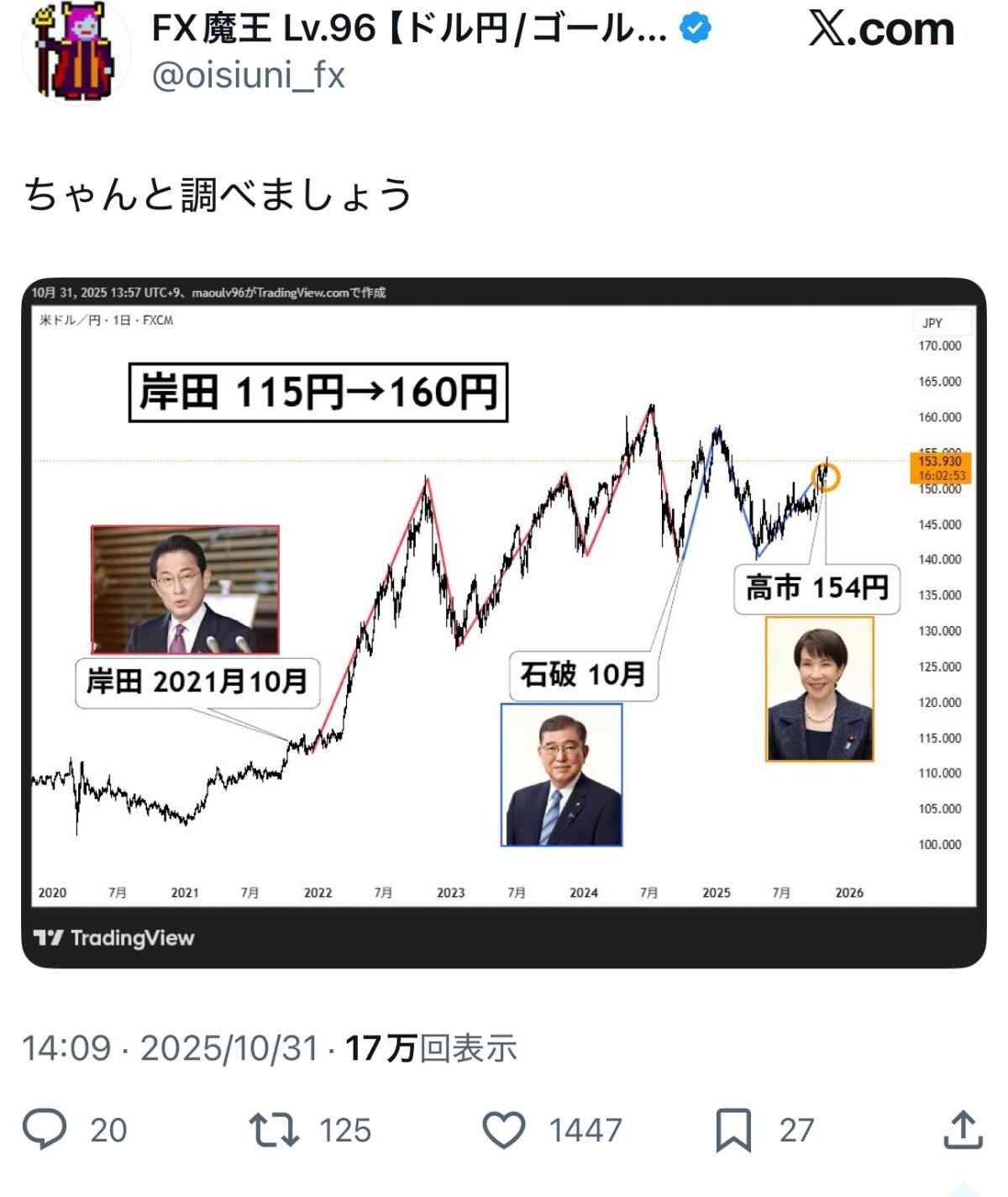【画像】X民「円安の戦犯はこいつだよ?ちゃんと調べましょう」