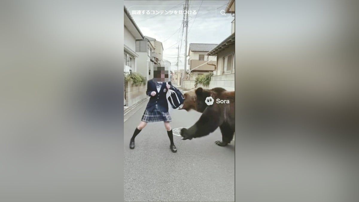 記者はティックトックで「熊 動画」と検索し、表示された100本の内容を調べた。少なくとも約6割で、米オープンAI社の動画生成AIで作成されたことを示すマーク「Sora」の表示や、投稿者のプロフィル欄にAIで作成したとの書き込みが確認できた。数十万回再生された動画もあった。