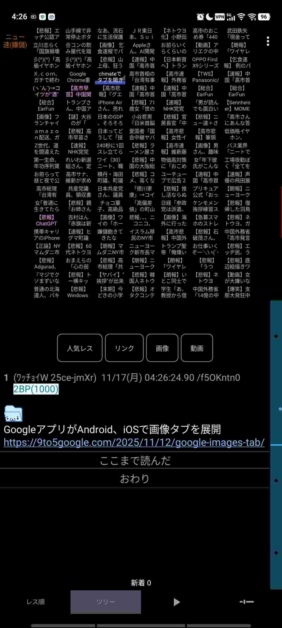 chmateでタブを開きすぎて画面の半分がスレタイで埋まってるんだが