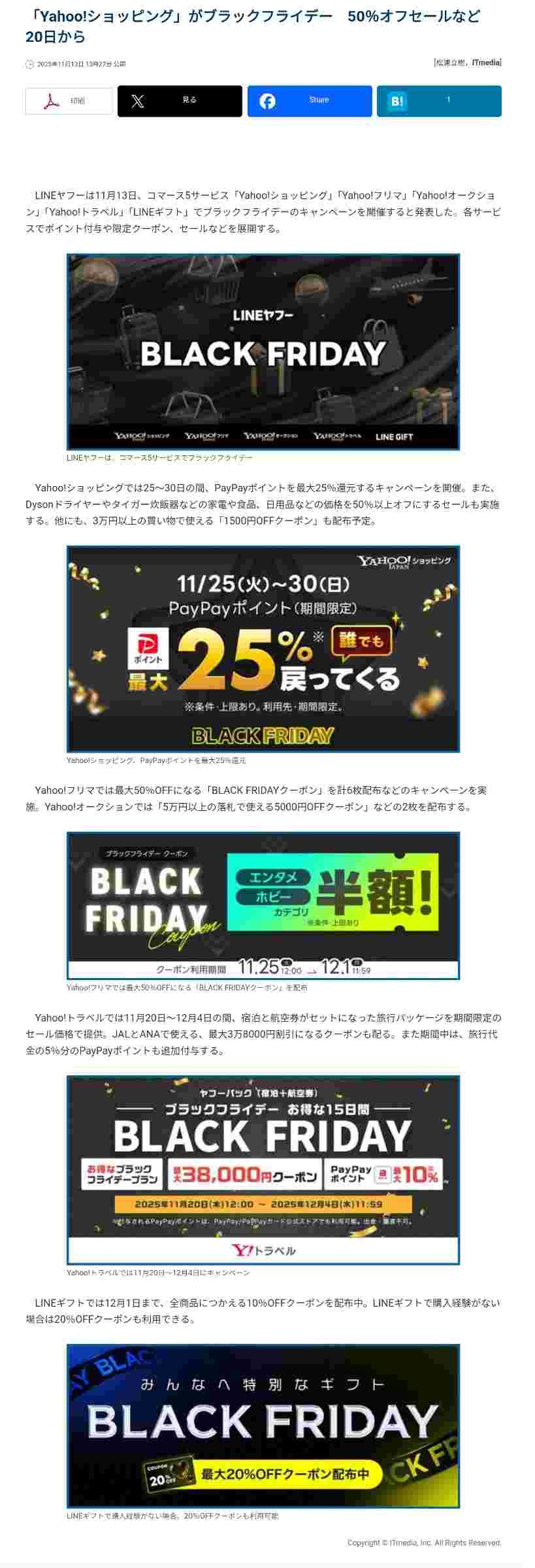 Yahooショッピング、ブラックフライデー開始。25日から30日まで