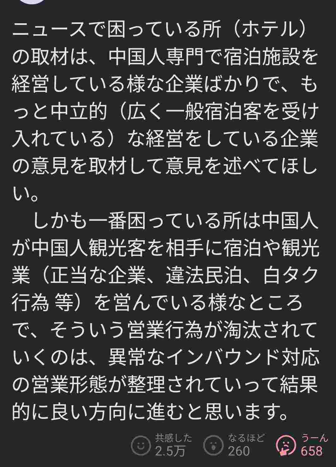ヤフコメ民「高市発言で困っている宿泊施設はすべて中国経営者だ!」
