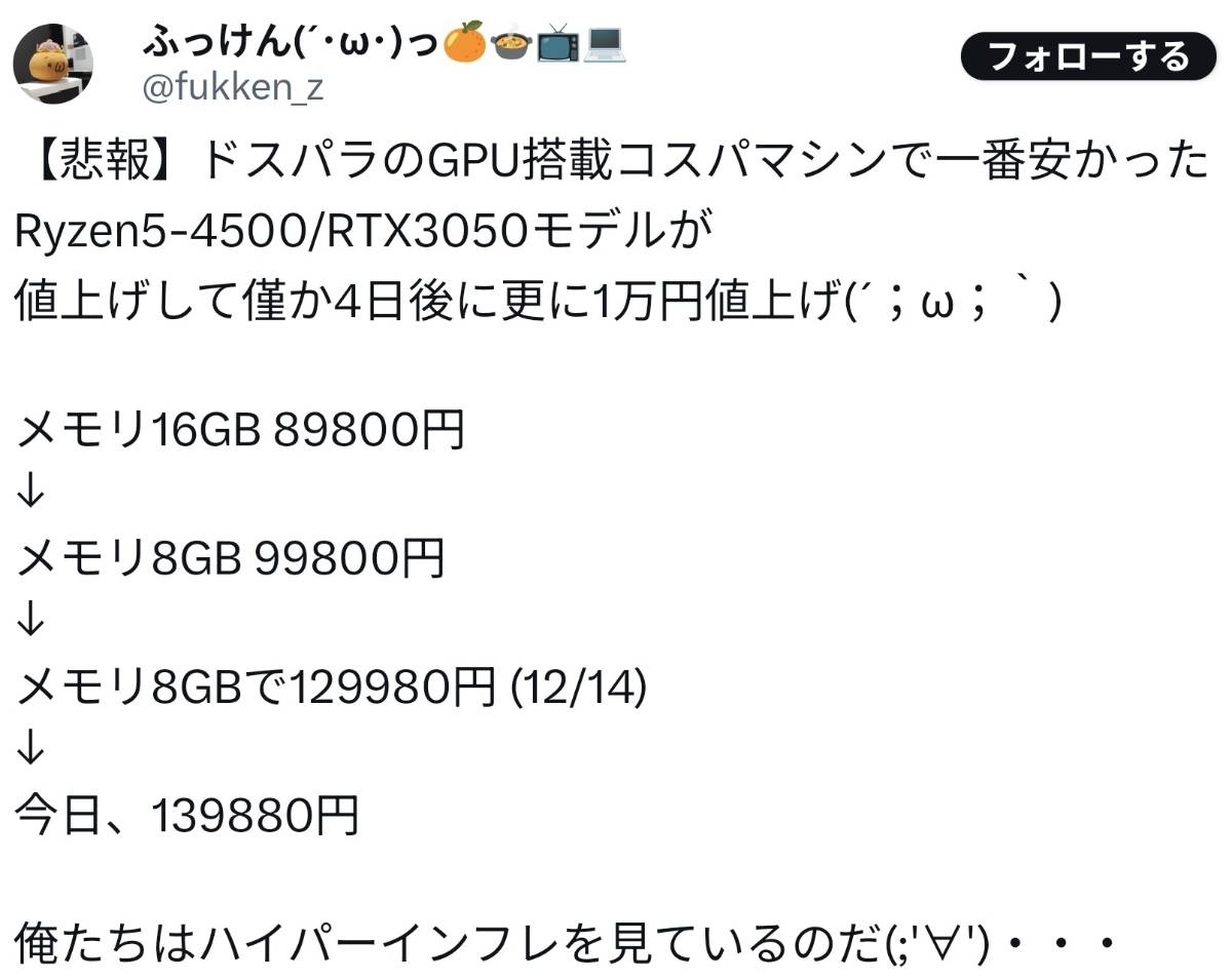 貴重なメモリをこんな利幅の少ない低価格PCに使われたらたまらんもんな