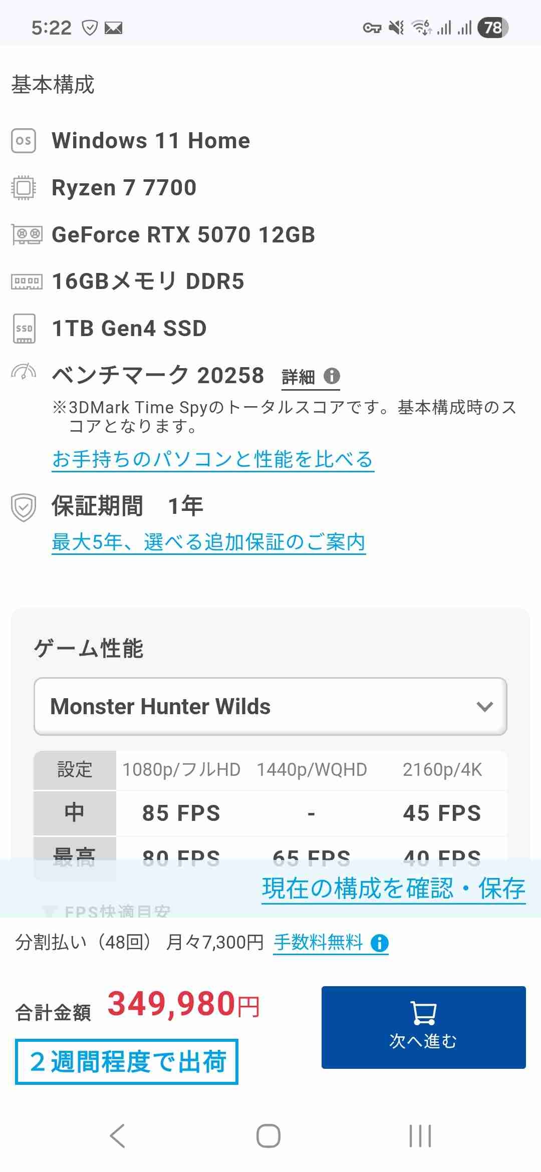 同じ性能のならASUSで31万で売ってるわ