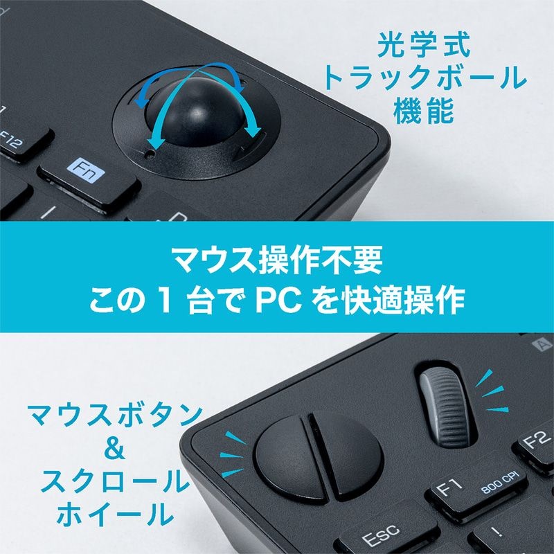 手持ち操作もできるトラックボール付きキーボード、ナカバヤシから