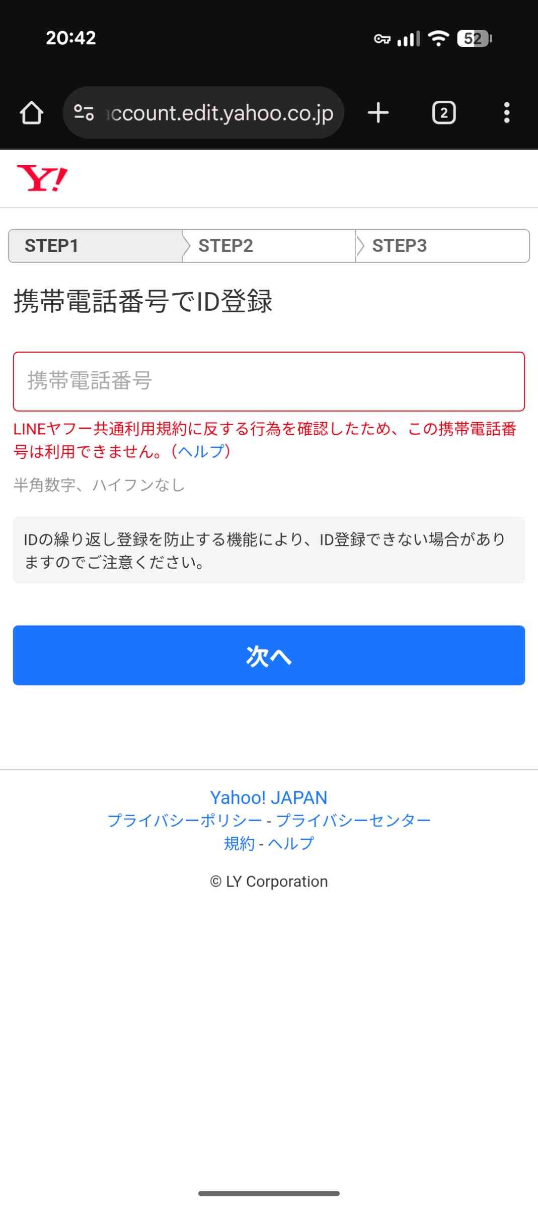 yahooに電話番号BANされたんだが