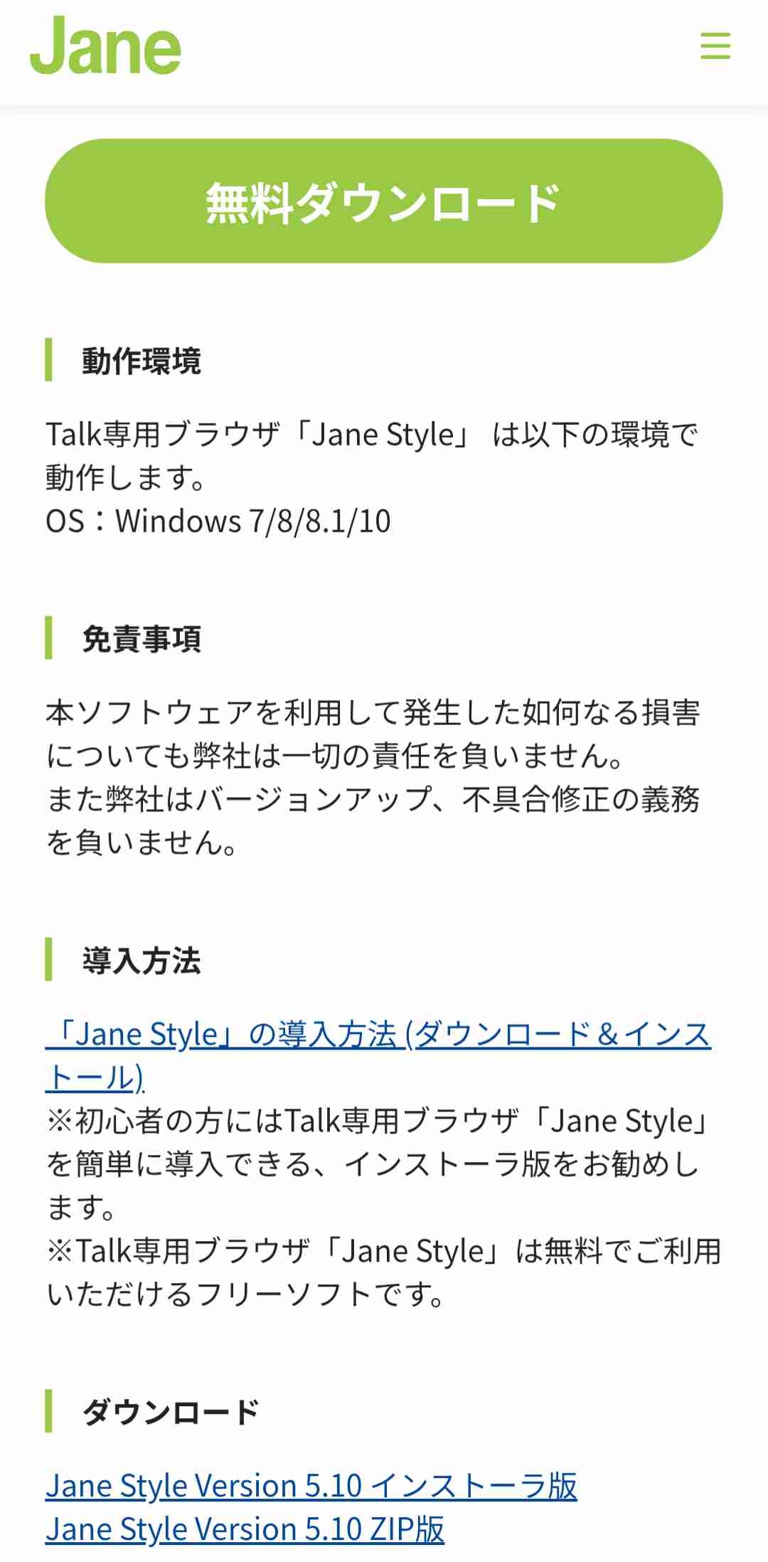 Talk専用ブラウザ「Jane Style」 は以下の環境で動作します。