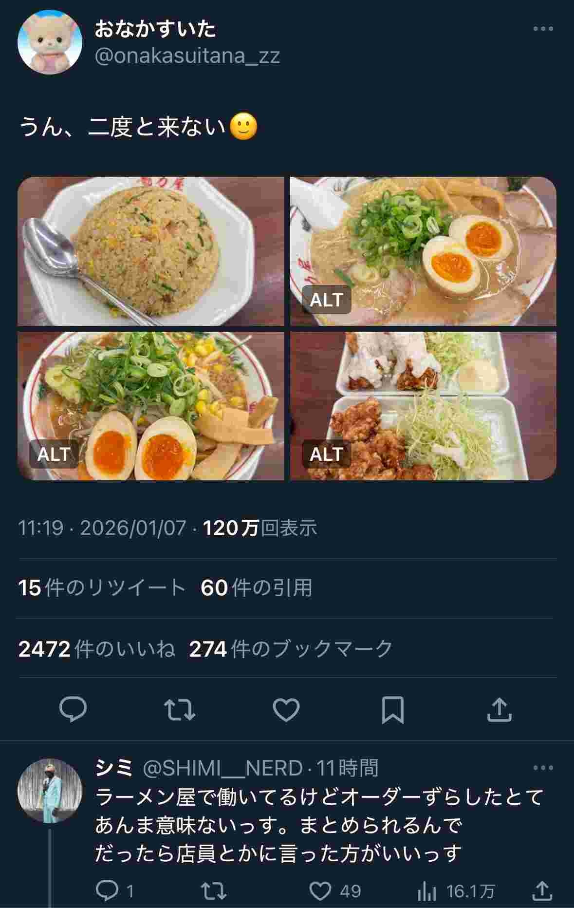 X民、ラーメン屋の提供順に怒り。二度と来ない宣言