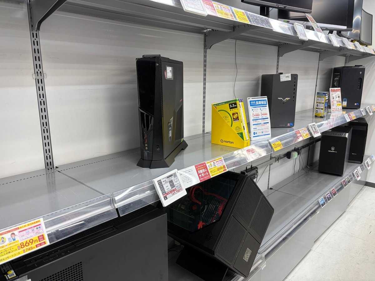 1/8(木) 18:38ソフマップゲーミングが公式Xにて、在庫の少なくなった中古PC棚を背景に「PCを売ってください」という直球すぎる“お願い”を投稿しました。パーツやゲーミングPCの品薄が続くなか、その影響は中古PC市場にも及んでいるようです。