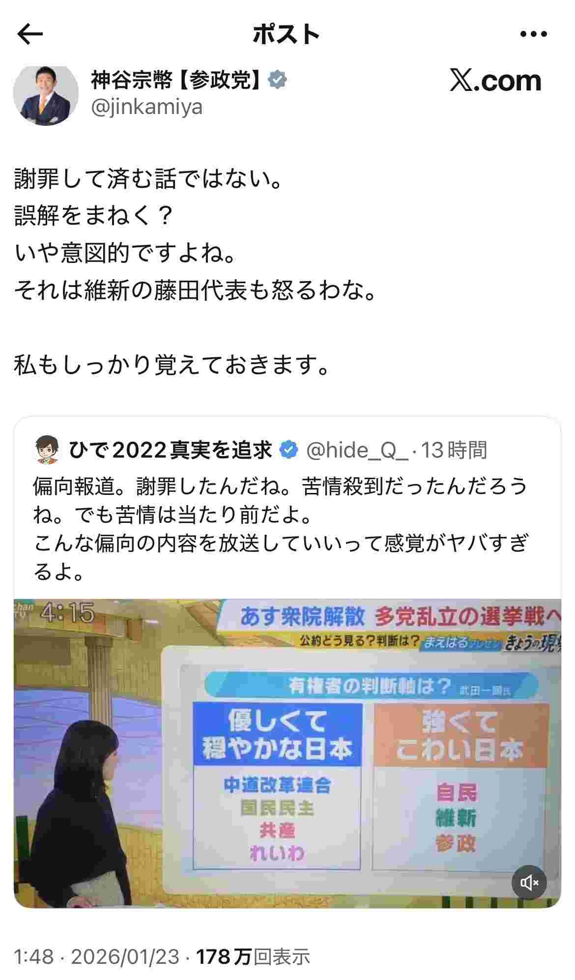 参政党神谷「デマを許すなー!😡」そのツイートのリプライで支持者がデマを流してしまう