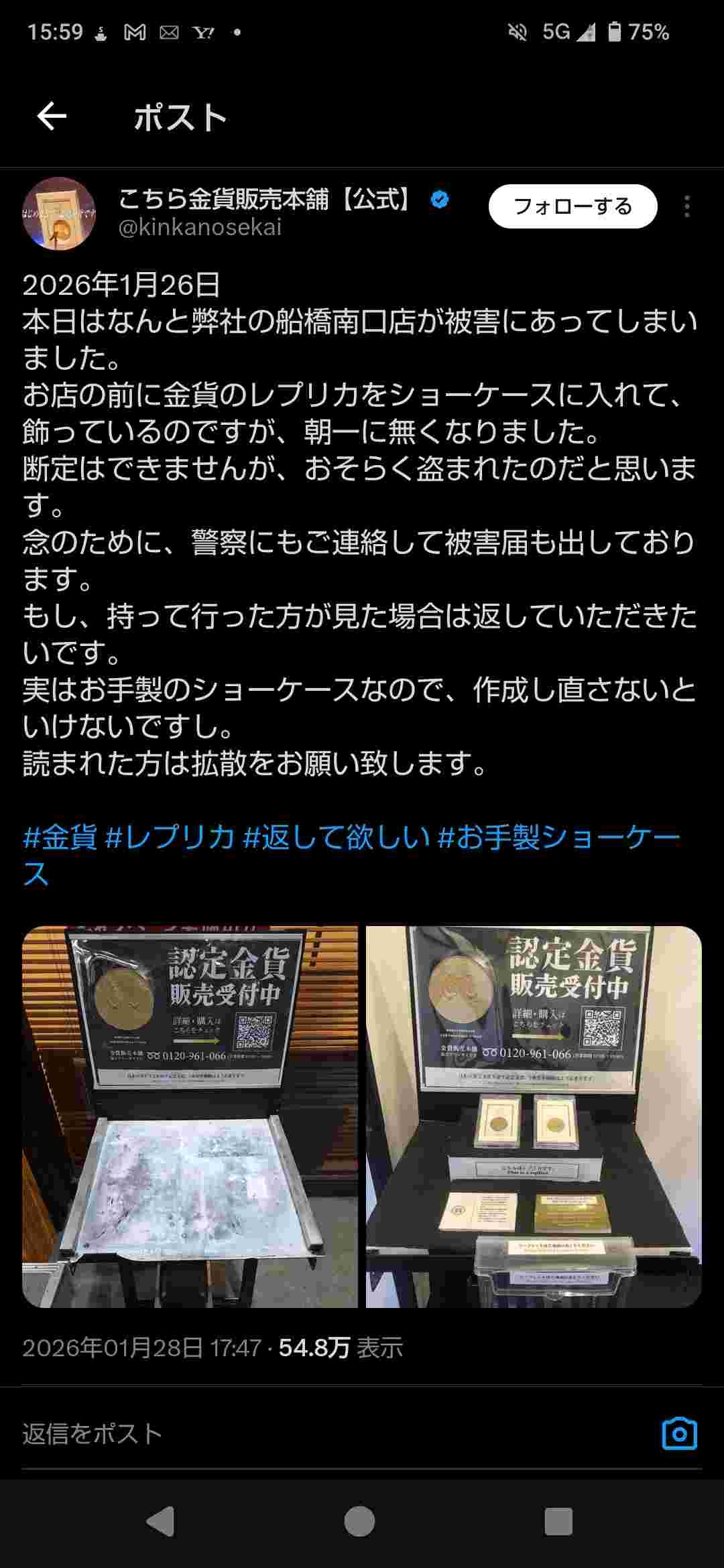 金貨って漢字で書かれてる部分に反応して反射的に盗んだ人がいるようだね
