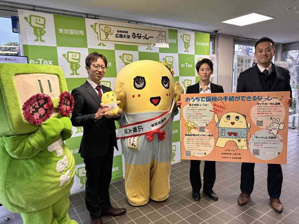 国税電子申告・納税システム「e-Tax」の普及を目的に、船橋市非公認キャラクター「ふなっしー」が1月28日、船橋税務署の広報大使に就任した。(船橋経済新聞)