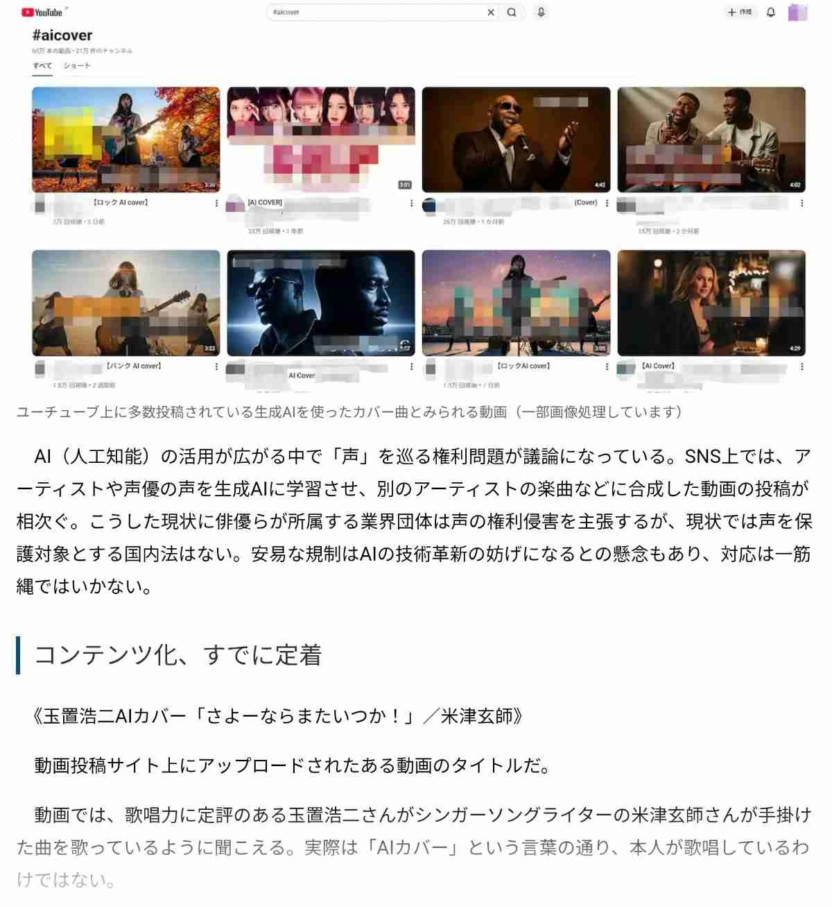 著名アーティストの曲を無断使用したAIカバー曲がYouTubeに量産される。声の権利をどう守る?
