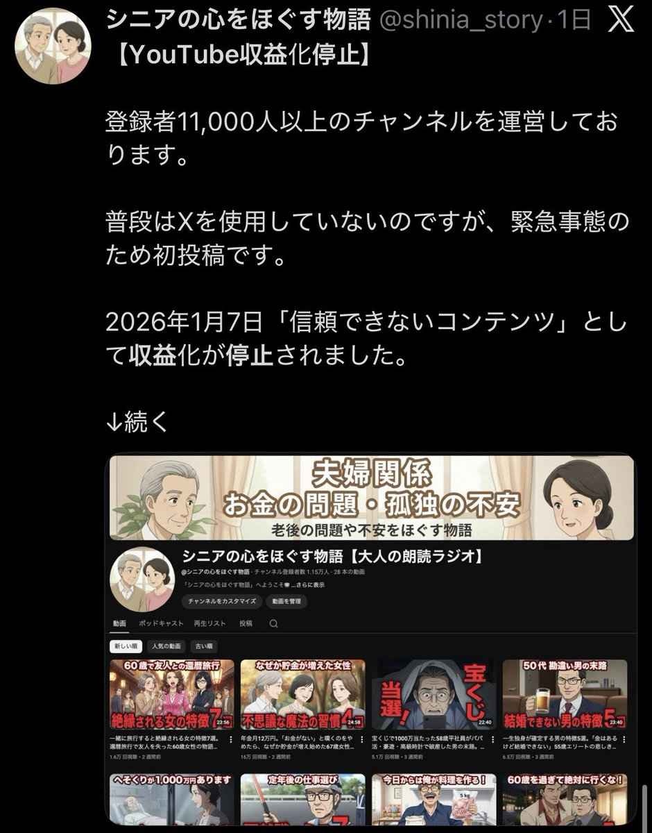生成AIで作られてるフェイク動画も紛らわしいから収益停止、アカウント排除してくれ