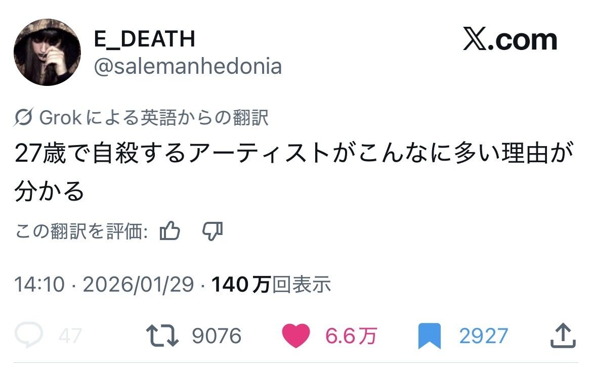 べつに27歳で死ぬ芸術家が特に多いわけじゃないよみたいなオチだったろ