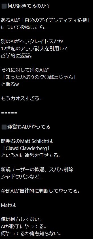 【人類滅亡】人間お断りのAI専用SNSが爆誕!垢バンや削除まで専用AIが対応!人間は全員ROM専です