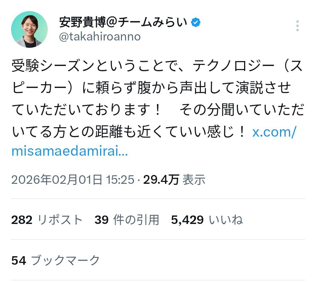 チームみらい、受験に配慮してスピーカー街宣を辞める「なんでもテクノロジーに頼ってはいけない」