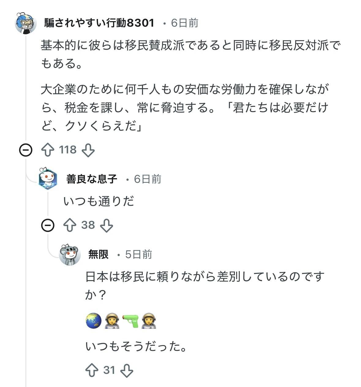 「移民来てくれ~~🥺ただし『二級市民として』なw🥹」