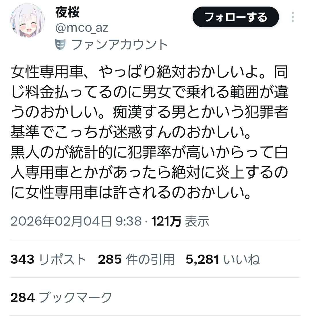 女性専用車両つくったやつは満員電車とか乗らんからな。当たり前だろ