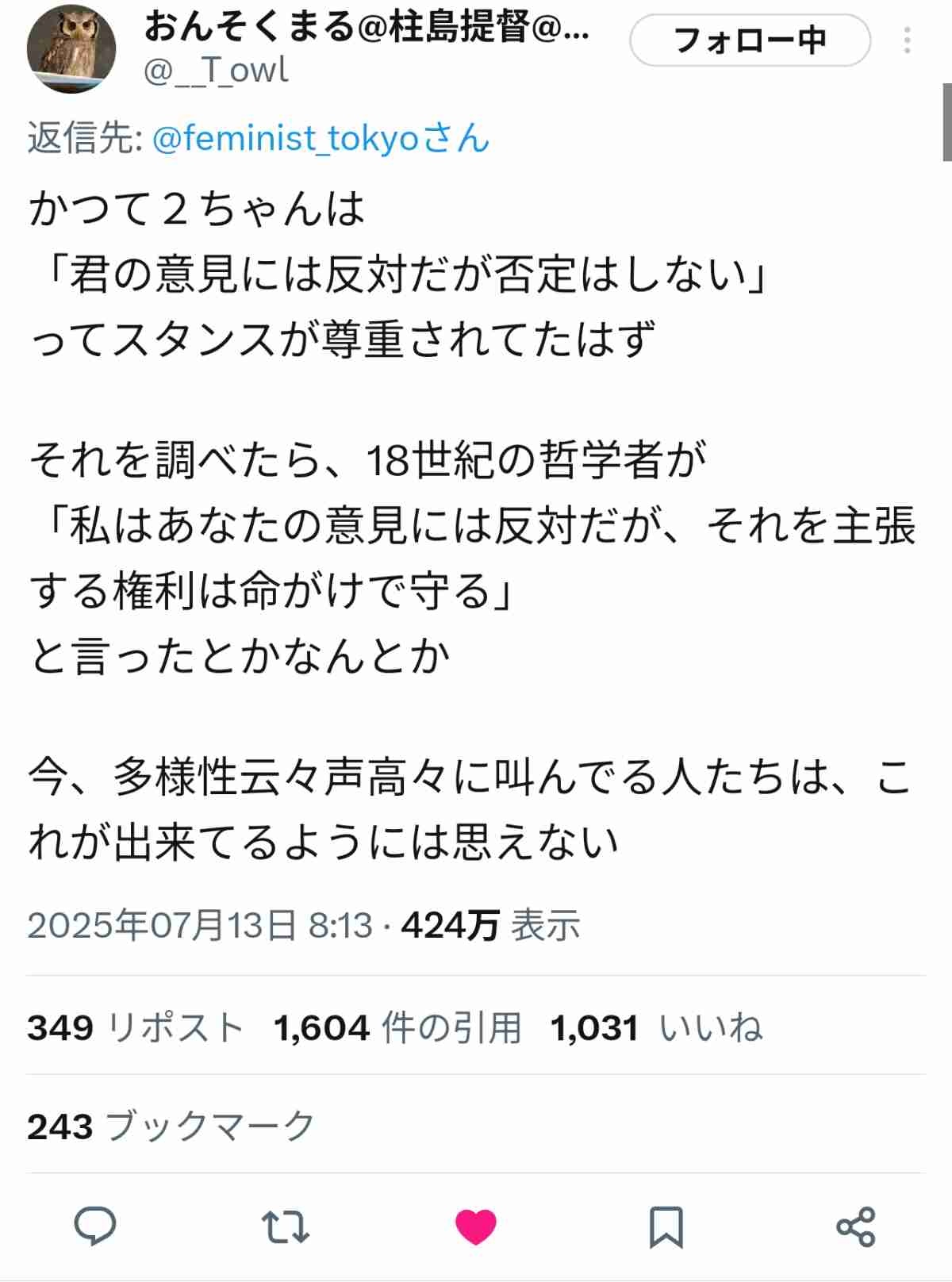 有職者「2chは『君の意見には反対だが否定はしない』ってスタンスが尊重される場所」←1031いいね