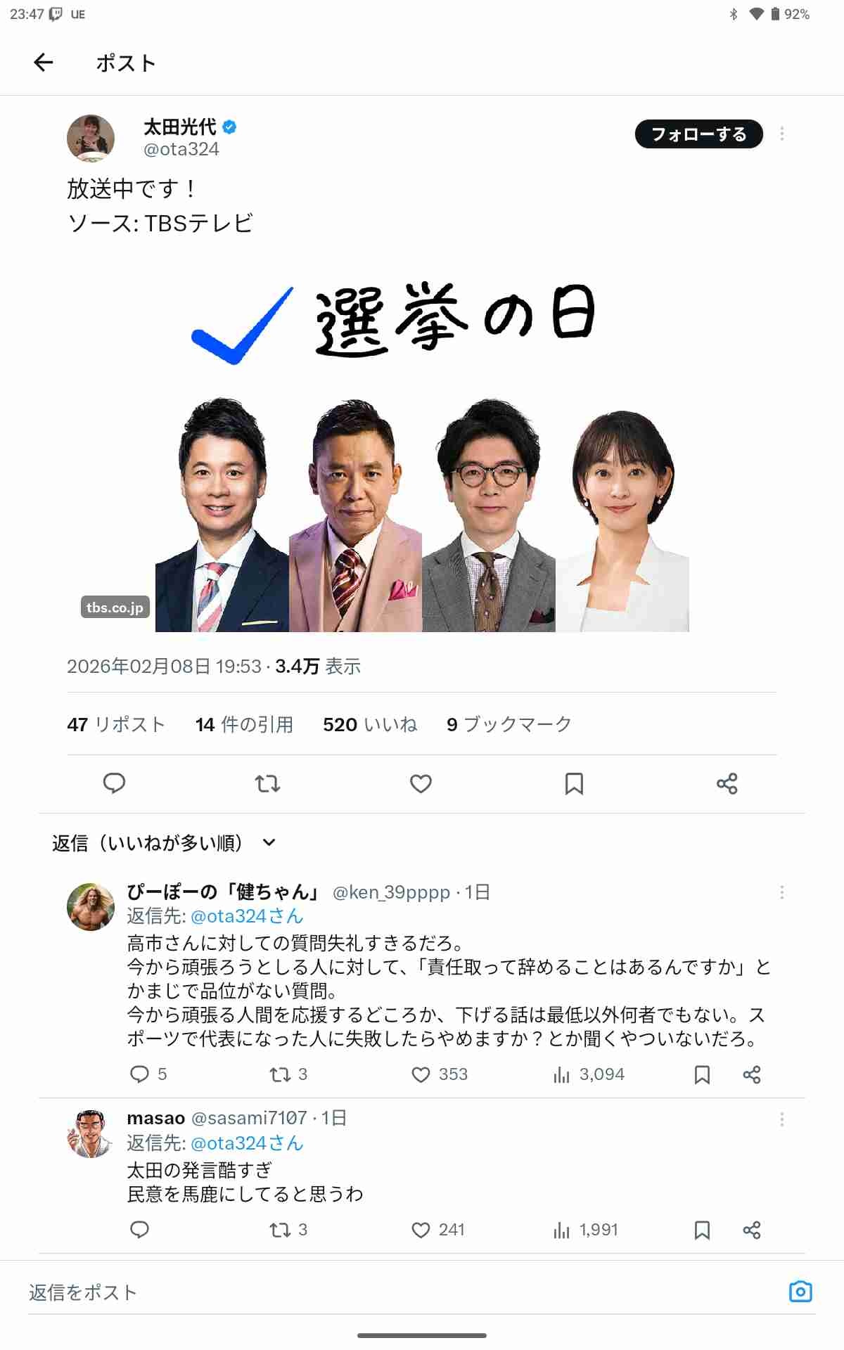 公約守れなかった場合どうすんのって一般論聞いただけのあのやりとりで荒らされるまで行くのか・……