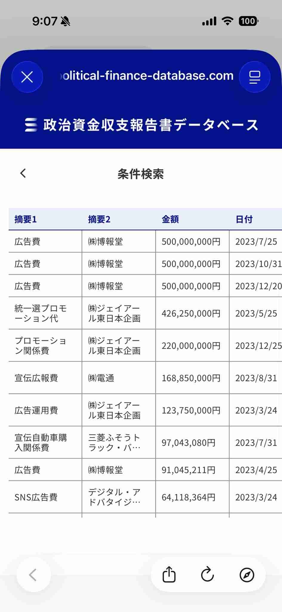 選挙活動ではなく政治活動という名目で、莫大な資金で新聞の全国広告を行うことは、明らかに選挙の公平に反します。