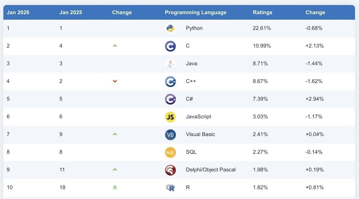 Pythonの人気が減少傾向、AIがPython苦手なため