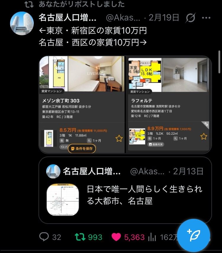 ツイッター騒然「名古屋行きたい」「移住するか」「コスパ良すぎだろ」「魅力的すぎる」
