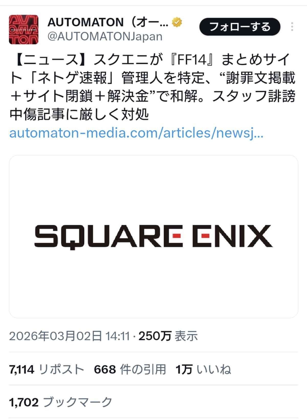 スクエニが悪質なまとめサイト管理人を特定し鉄槌を下す