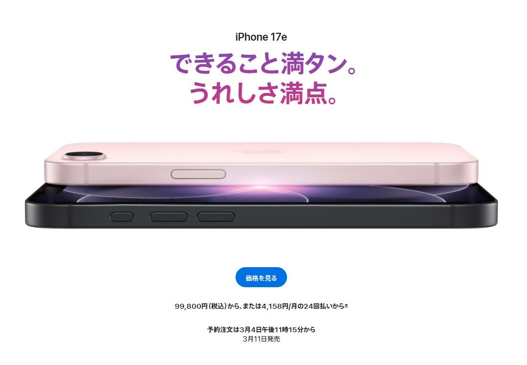Appleは3月3日、新型「iPhone 17e」および新型「iPad Air」を発表した。いずれも予約注文は3月4日の午後11時15分から開始され、3月11日に発売予定となる。