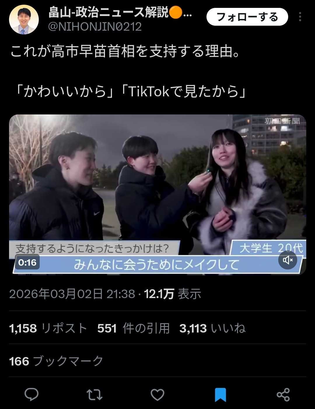 高市の支持率が異様に高い要因は「リベラルが飽きられた」だのいろいろ言われてるけど、やっぱりイメージだと思うぞ。小泉も「有権者の半分はイメージで投票する」って結論になって実際イメージ重視して選挙大勝したからな