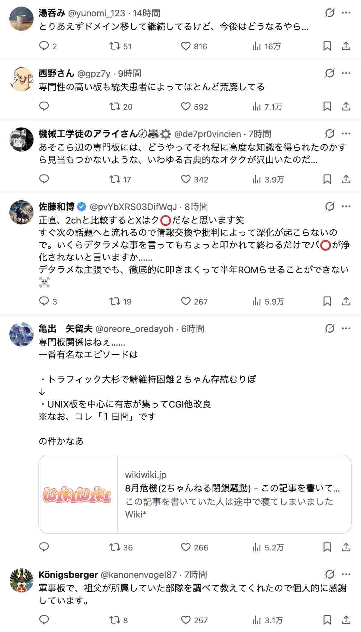 専門板とか数年前に荒らされまくってるし