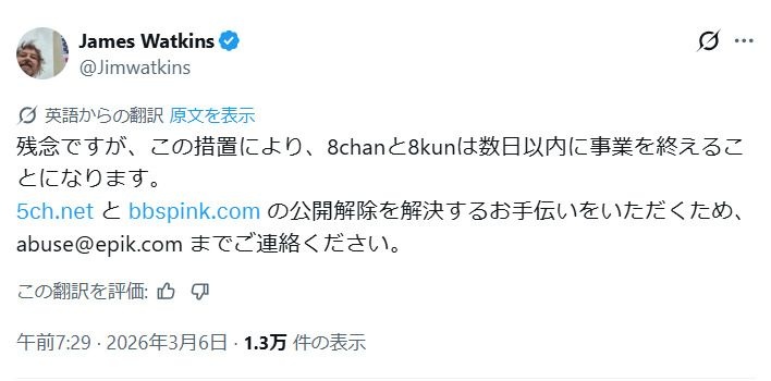 「5ちゃんねる」のドメイン「5ch.net」永久停止へ 動物虐待コンテンツ放置で