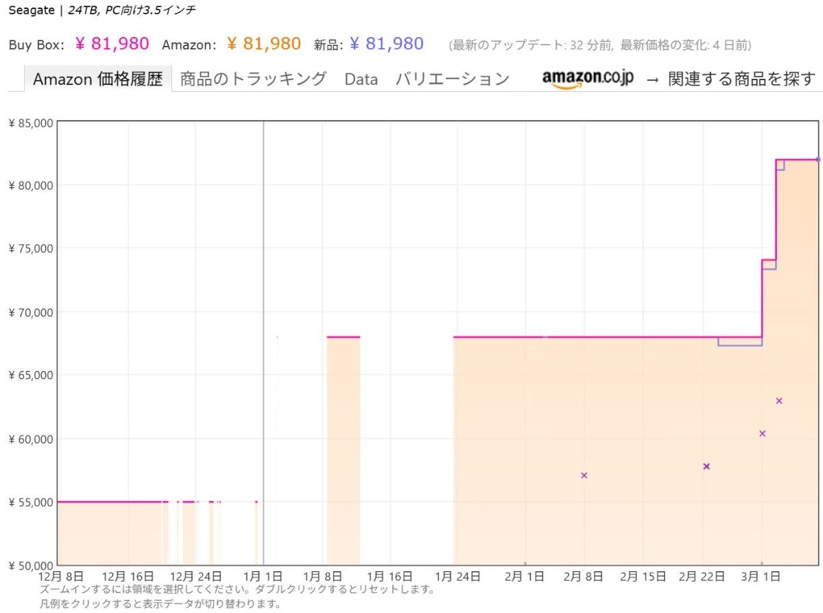 10月ごろ購入検討してたときは24TB 39800円の時もあった(と思う)
