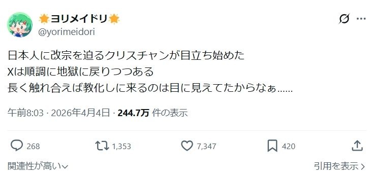 現代のキリスト教は当時とは布教のスタンス変わってるやろと流石に