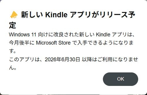 【石破速報】Kindle for PCアプリ、2026年6月30日以降は廃止に。後継として新しい Kindle アプリが今月後半に Microsoft Store に登場へ