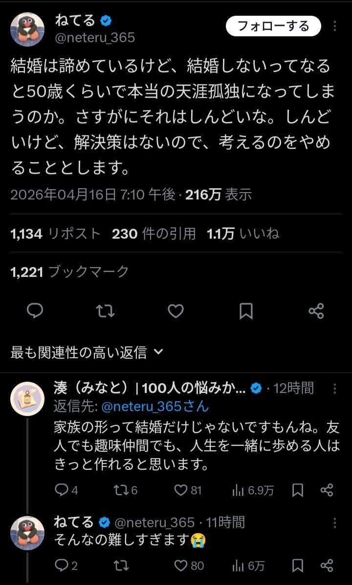 誰だって最終的に孤独🥺それがはやいかおそいかの違い🥺いい加減さとれ😡