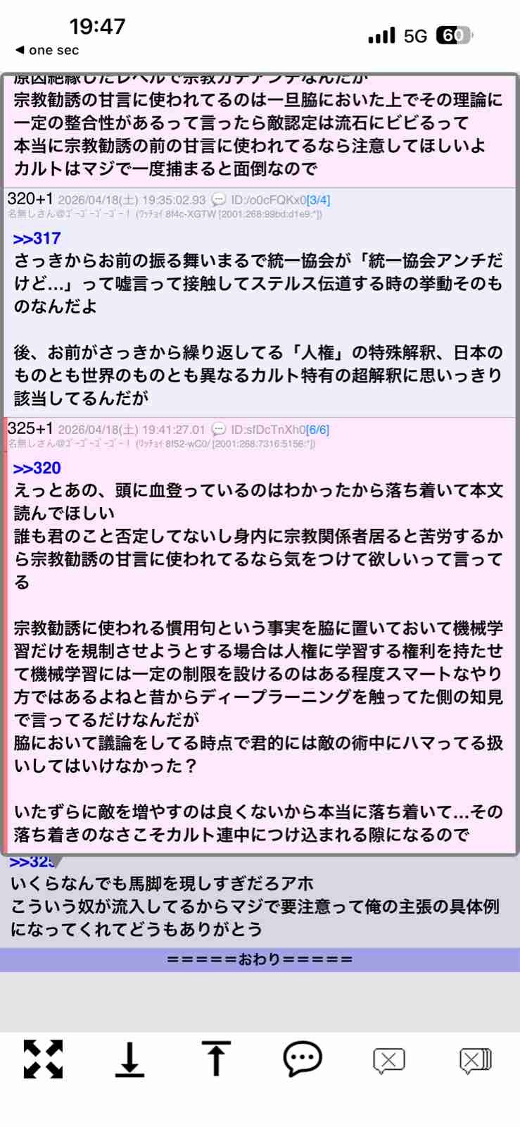 こういう統一教会信者が馬脚を露わすスレはどんどん立てなさい