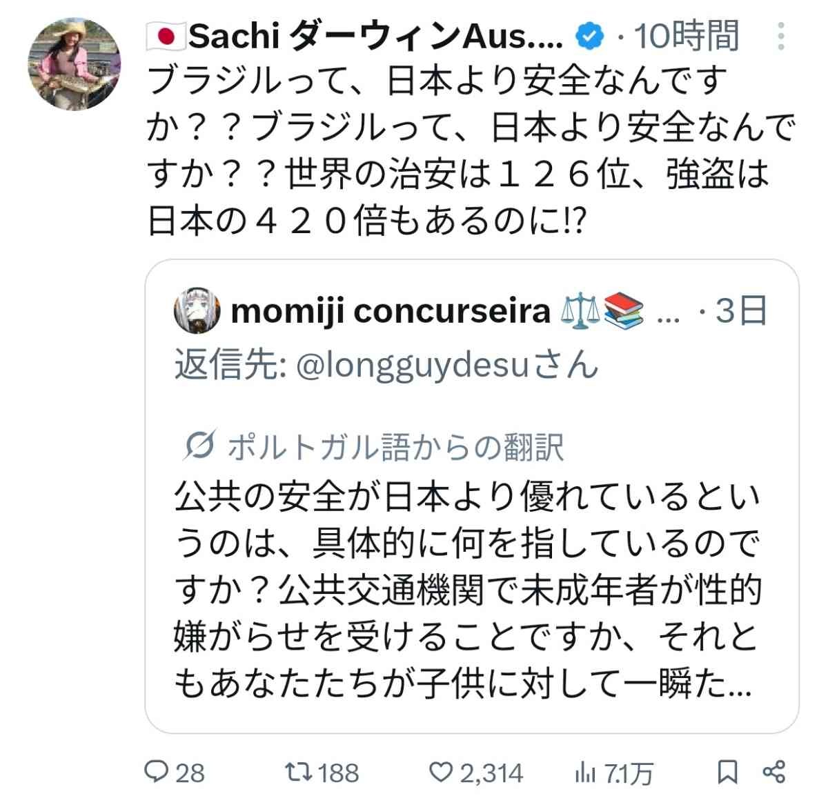 まあ事実日本でいう軽犯罪なんてブラジルでは犯罪として扱われてないだろうよw