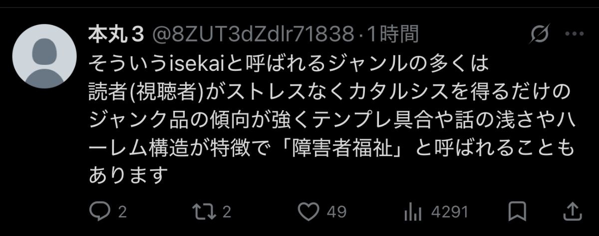 それはそれとして、なろう自体はアニメーターの作画や原作者の設定作りでカバーしてるけど根本がしょうもない